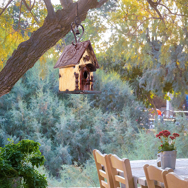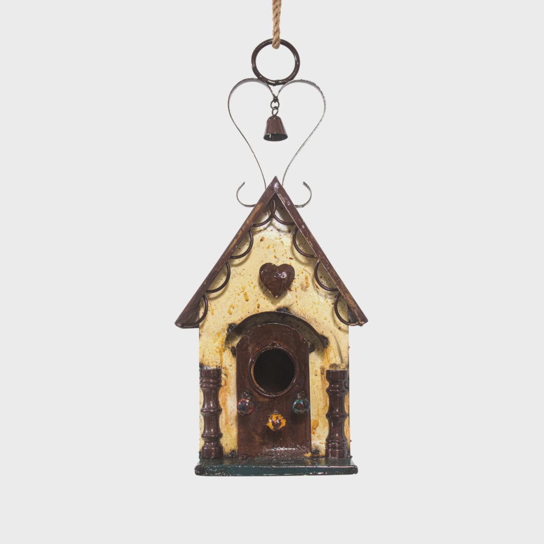 The Atalia Birdhouse is a unique and charming piece of handcrafted recycled metal home and garden decor. Measuring 23 inches in height, this birdhouse is perfect for attracting a variety of birds to your garden or backyard. Made from recycled metal, it is not only eco-friendly, but also durable and long-lasting. The intricate design and attention to detail make this birdhouse a standout addition to any outdoor space. Whether you're a bird enthusiast or simply looking to add some character to your home, the Atalia Birdhouse is a perfect choice.Share