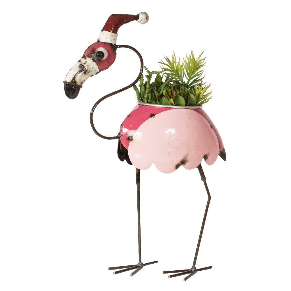Add a whimsical touch to your home or garden with our handcrafted Baby Flamingo Planter with Santa's Hat. Made from recycled materials, each planter is unique and eco-friendly. The planter is designed to hold small plants or herbs and features a cute baby flamingo wearing a Santa's hat. This planter is the perfect addition to any holiday-themed decor or as a year-round accent piece. Bring a touch of fun and sustainability to your space with this adorable planter.Share