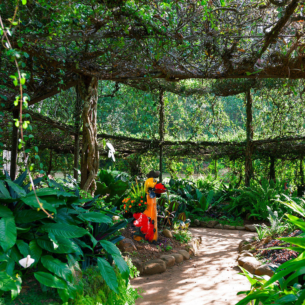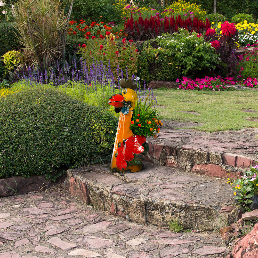 Place this brilliant rooster on a porch, patio or anywhere indoors and set a potted plant inside. The opening is just the right size for a pot of real or faux flowers, house plants, kitchen herbs and more (plant not included).