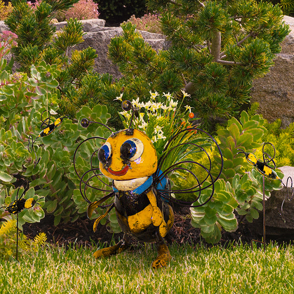 Elevate your home and garden decor with the Buzzy Bee Planter. This charming standing or hanging planter adds a touch of whimsy and functionality to your space. Crafted by hand and made from recycled materials, it's a sustainable and delightful addition to your surroundings. Bring the beauty of nature indoors or outdoors with this bee-inspired planter.Share