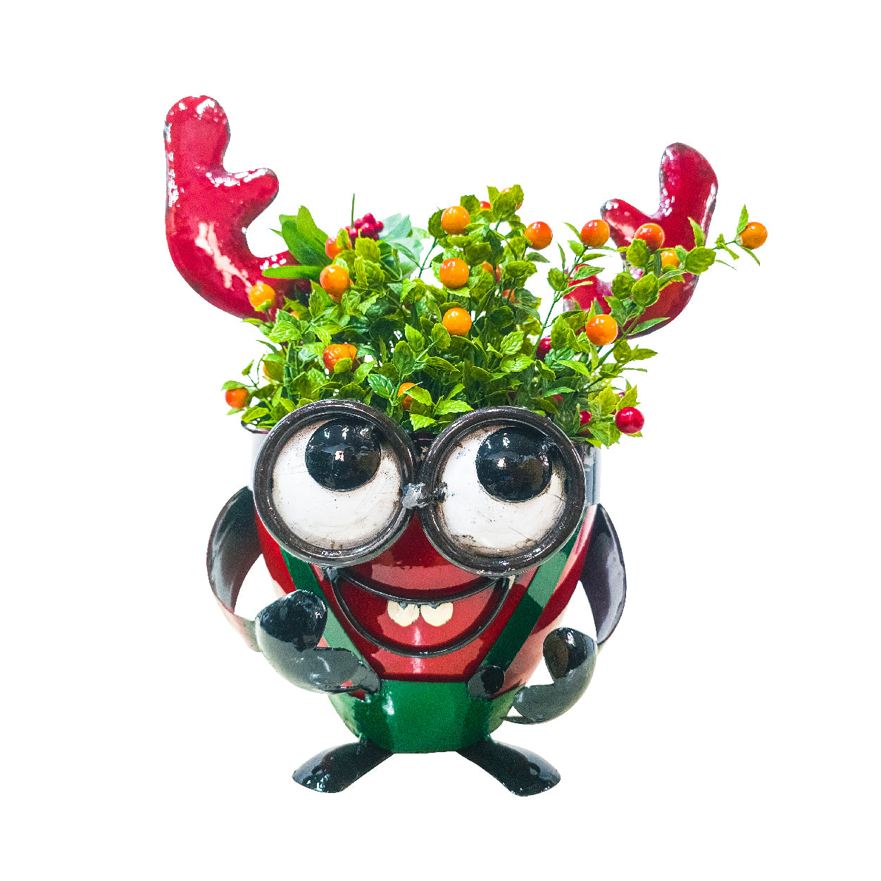 Introducing the Christmas Antler Crazy Pot - Up from our festive collection! This unique plant pot is made from recycled materials and handcrafted with love. With its antlers and eyes, it adds a touch of whimsy to any home or garden decor. Perfect for displaying your favorite plants or as a quirky centerpiece, this pot is sure to bring a smile to your face this holiday season.
