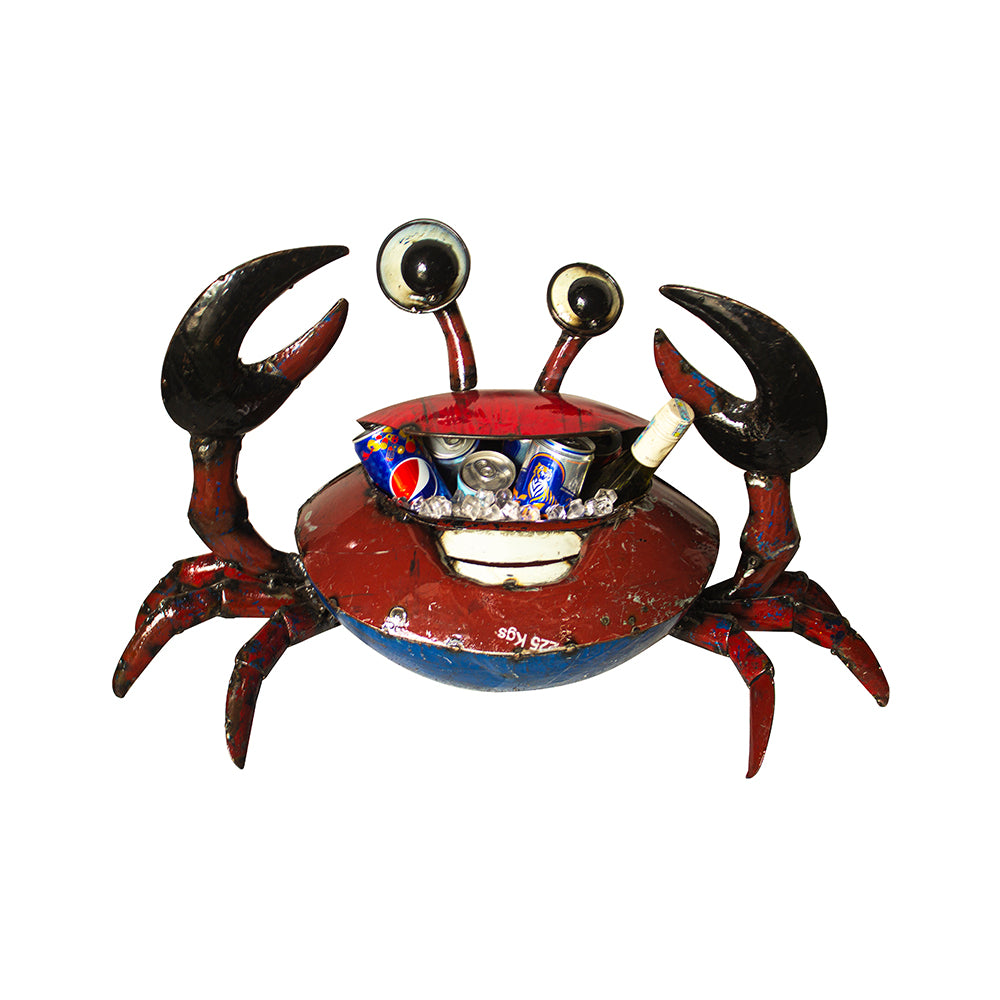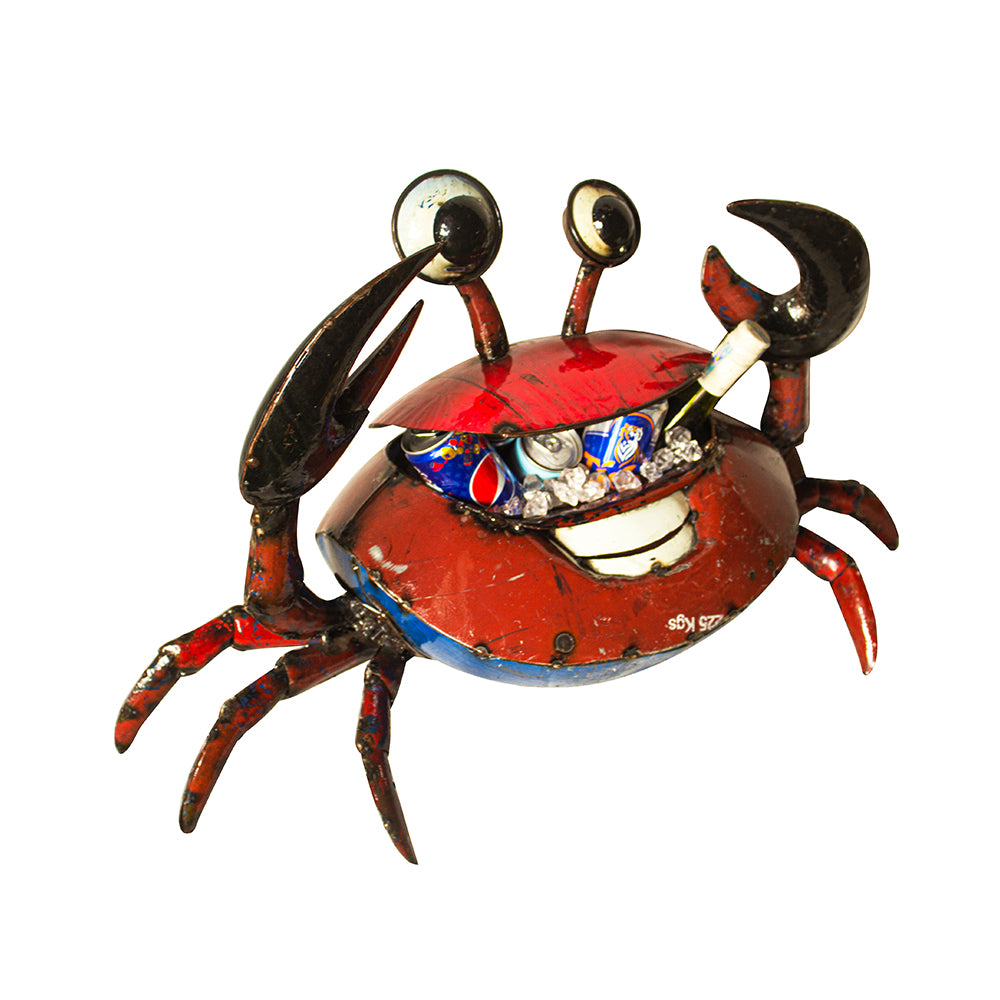 Introducing the Crazy Crab Beverage Tub, a handcrafted and upcycled red crab statue, this unique piece serves as both a decorative item and a functional beverage tub, making it a perfect addition to any home or outdoor gathering. Made from recycled materials, this eye-catching crab statue is not only a conversation starter but also an eco-friendly choice for those who appreciate sustainable products.