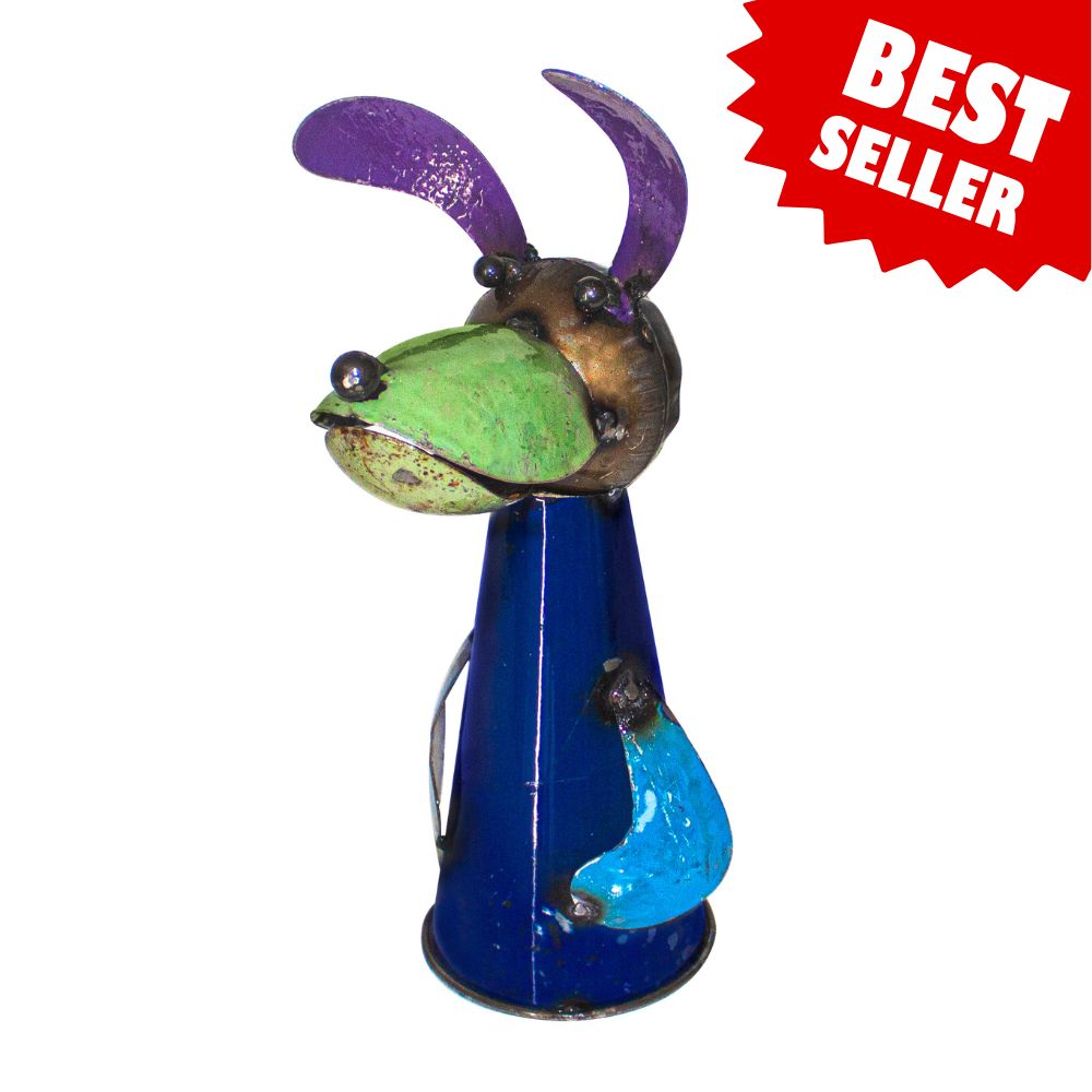 - This dog sculpture is made of metal making it a durable product