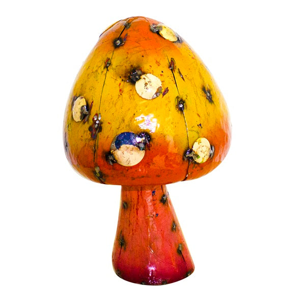 Introducing the enchanting Little Mushy from our Wonderland Collection. This whimsical glass mushroom sculpture from Think Outside, adorned in vibrant yellow and orange hues, stands at a delightful 14.8 inches. Meticulously handcrafted from eco-friendly recycled materials, it's a charming nod to sustainability. Inspired by famous fairytale Wonderland, Little Mushy is the petite standout in our Mushroom Package, transforming your garden into a whimsical wonderland. Elevate your outdoor space with this eco-conscious, charming garden decor that promises a touch of enchantment and joy.