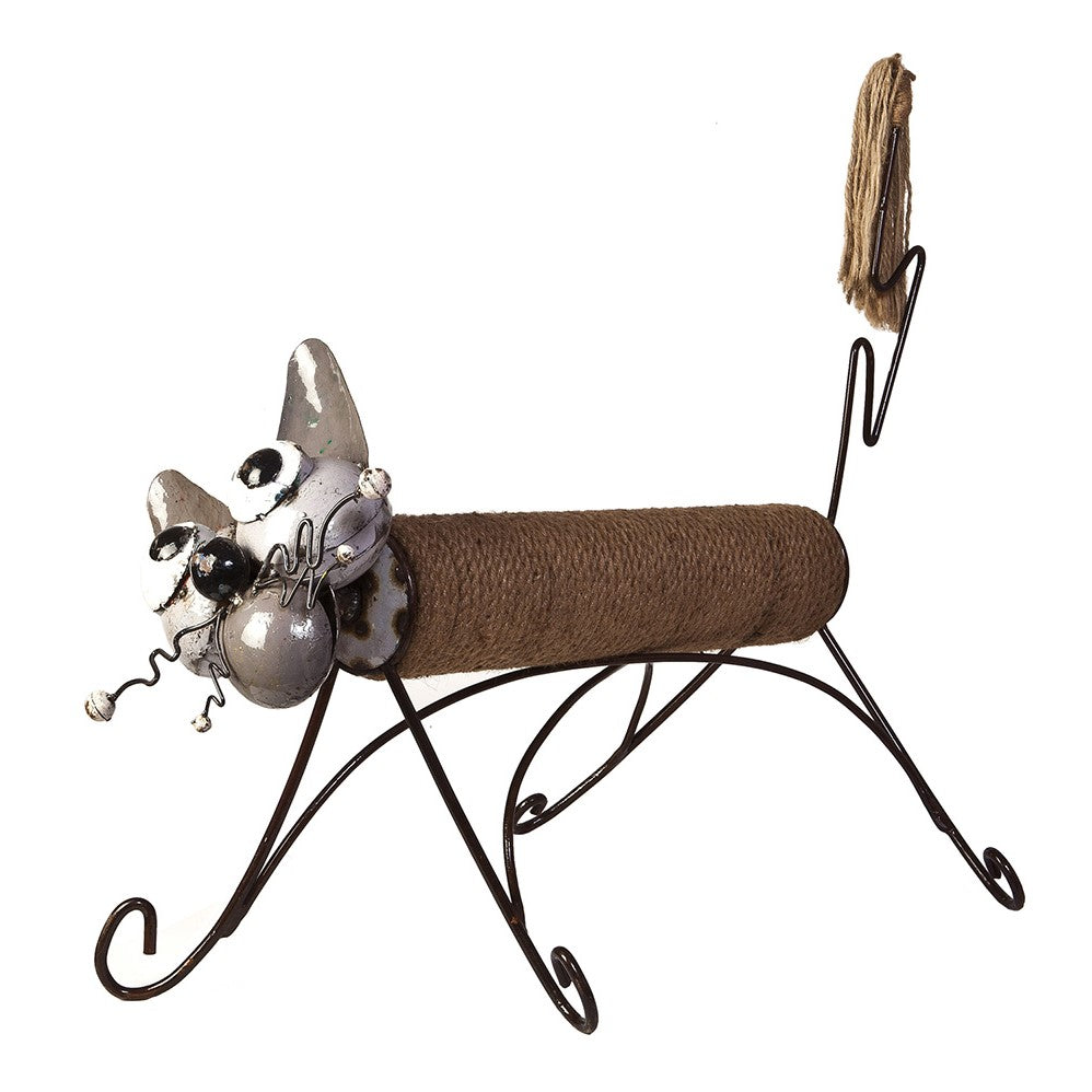 Handmade from recycled oil barrels with thick, high quality rope with hanging tassels, which cats love to play with.