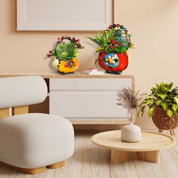 Elevate your home and garden decor with our "Out on the Town Handbags" set of 2 planters. These unique planters feature a charming handbag shape that adds a touch of whimsy to any space. Handcrafted with care from recycled materials, they are not only environmentally friendly but also a stylish addition to your surroundings. Perfect for showcasing your favorite plants or flowers, these planters will make your garden or indoor spaces come alive with beauty and creativity. Get ready to go "Out on the Town" with these eye-catching planters.