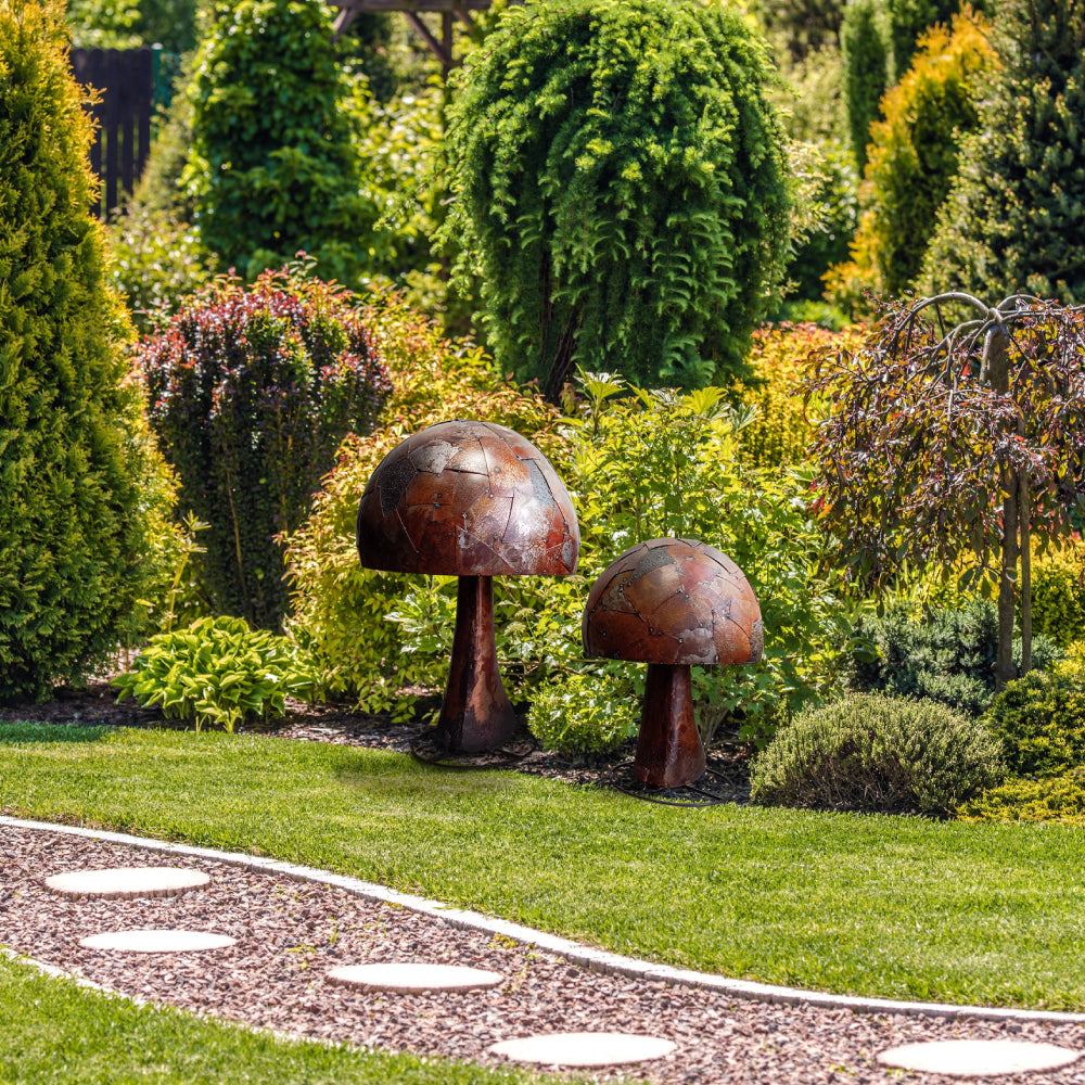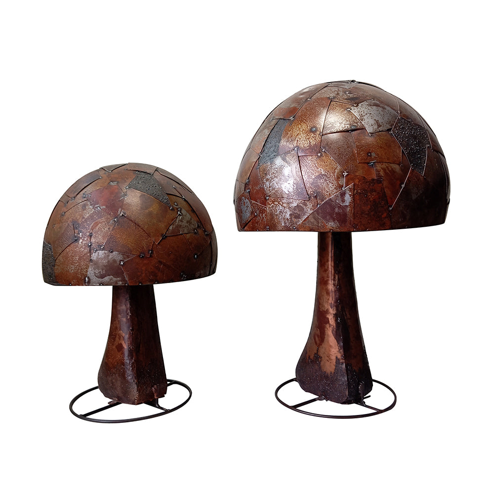 The Rustic Mushroom Large is a striking, handcrafted metal sculpture designed to bring an earthy charm to any garden or outdoor setting. Its unique patchwork texture and natural rust patina create an aged, weathered look that complements its organic shape, inspired by forest mushrooms. Perfect as a standalone piece or paired with other sculptures, this rustic mushroom adds a touch of whimsy and warmth, making it a captivating addition to your outdoor decor.