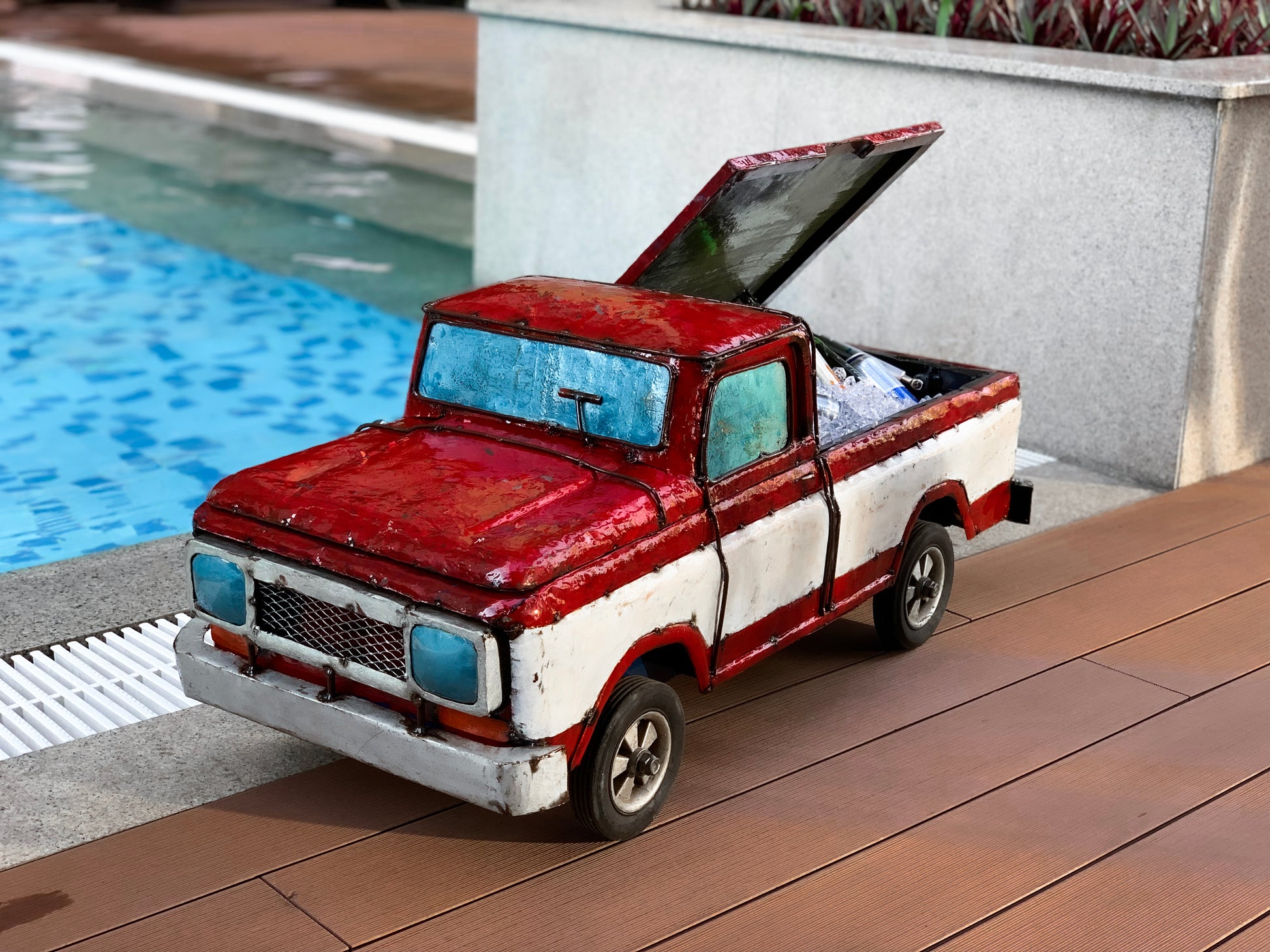 Whether hosting a backyard party under the sun or enjoying a movie night with the fam, this Sammy’s Pick Up Truck is a perfect item to keep your favorite refreshments cool and chill. The unique design will be a showstopper in your party and an essential part of your summer entertaining necessities.