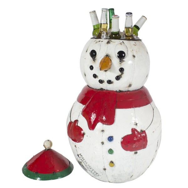 This Snowman Beverage Tub Large is a charming piece of handcrafted home and garden decor made from recycled metal. Perfect for entertaining guests, this unique beverage tub can hold plenty of drinks and keep them chilled for hours. The snowman design adds a festive touch to any holiday gathering, and the sturdy construction ensures that it will last for years to come. Not only is this piece functional, but it also makes for a lovely decorative accent for any home or garden. Dimensions (inches): 30.7 x 17.3 x 18.5 inches Dimensions (cm): 78 x 44 x 47 cmShare
