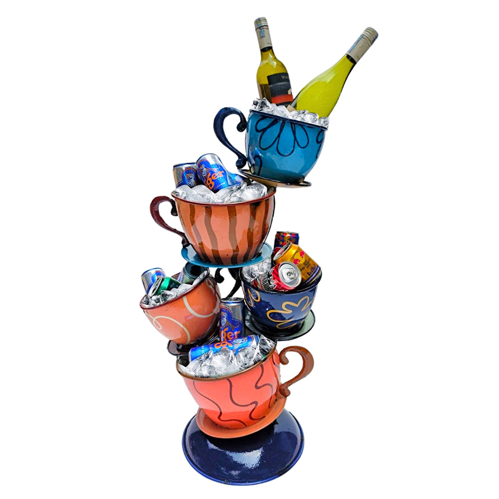 Introducing The Tea Party Beverage Tub, a versatile and eco-friendly addition to your home decor. This handcrafted beverage tub can be used to hold wine and ice, making it perfect for entertaining guests or simply enjoying a relaxing evening at home. Made from recycled and upcycled materials, this unique piece also doubles as a planter, adding a touch of greenery to any space. Whether you're hosting a party or simply looking for a stylish way to display your favorite beverages, The Tea Party Beverage Tub is the perfect choice.