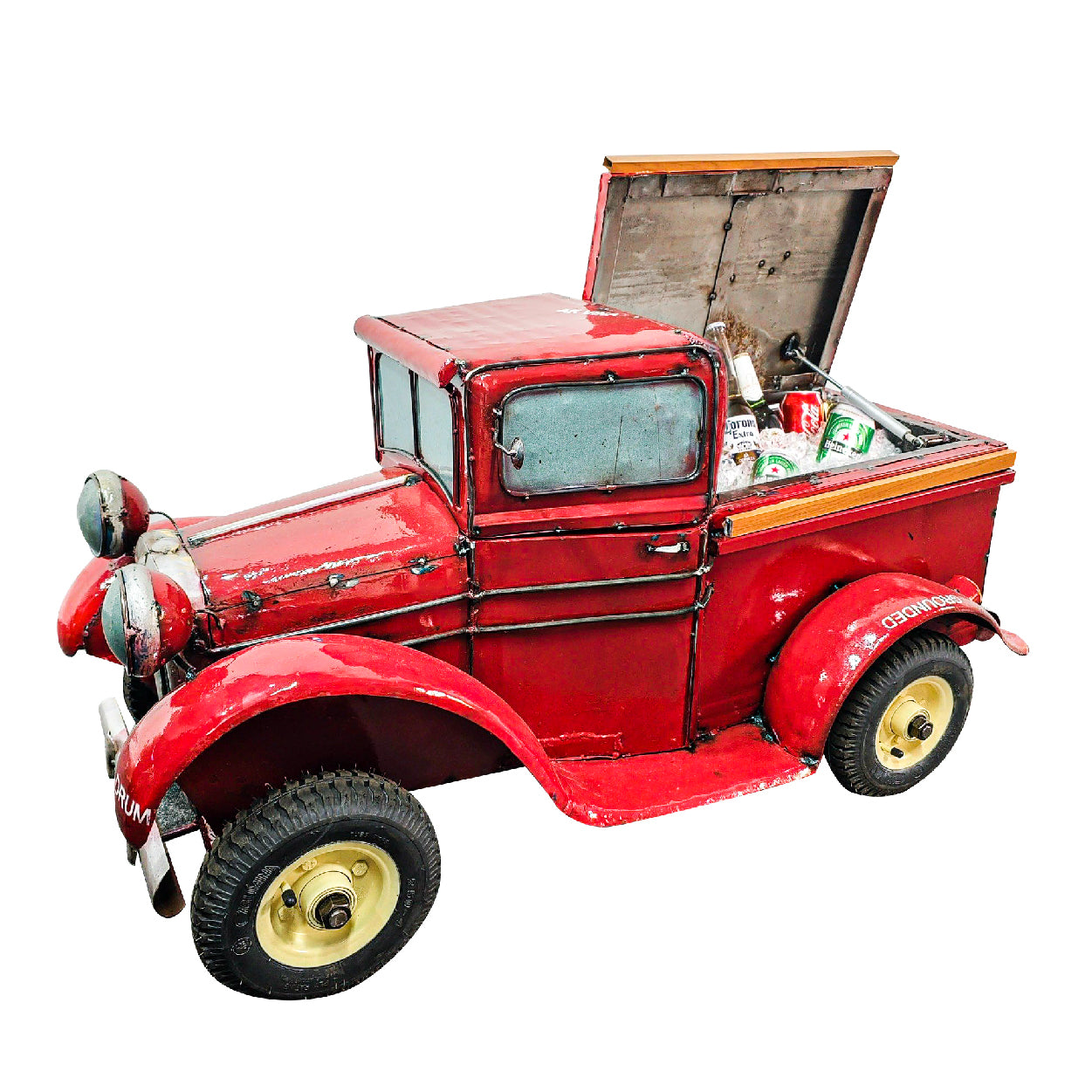 The upcycled design of Vintage Pick-Up Truck Cooler - Red ensures that each piece is one-of-a-kind, with its own distinct character and charm. The old red truck with cooler function is not just a functional cooler but also a conversation starter, sure to impress your guests and stand out from the crowd. Whether you're heading to the beach, a barbecue, or a camping trip, this Vintage Pick-Up Truck Cooler is the perfect companion for keeping your drinks cold and your style hot. Embrace the retro vibes and make a statement with this eye-catching piece that combines practicality with a touch of whimsy.